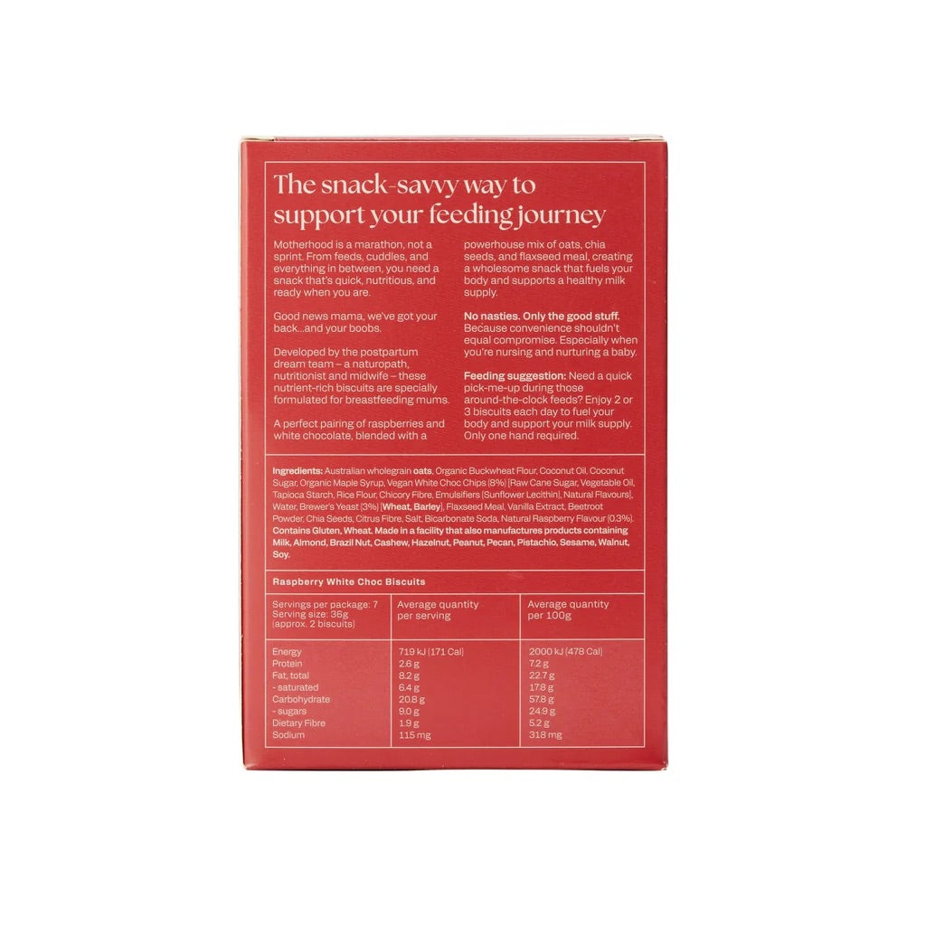 Our Raspberry and White Choc Mama Biscuits are nutrient-rich, created to help boost and support milk supply for breastfeeding and pumping mums.