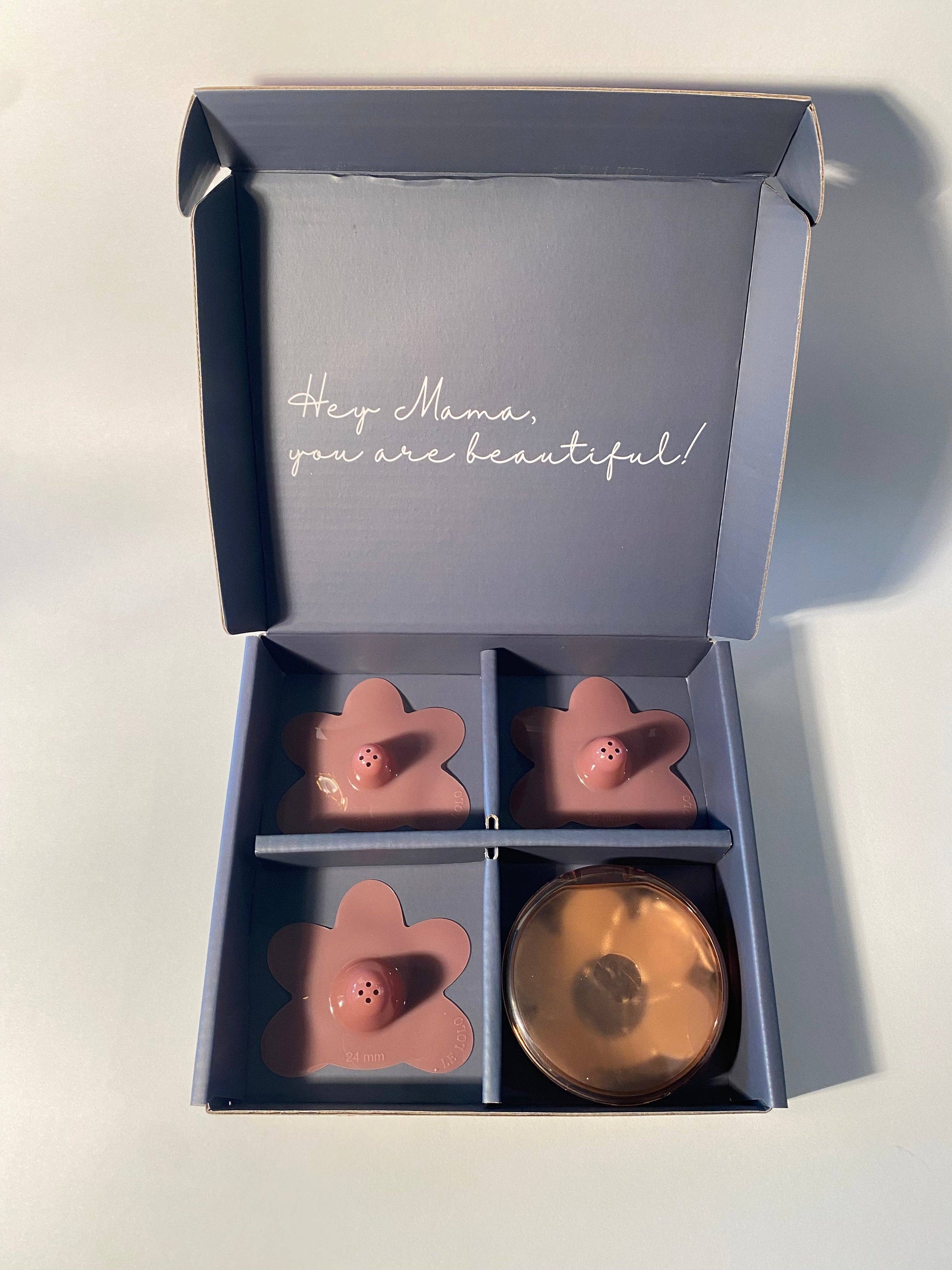 Introducing the Perfect Fit Kit: the ultimate solution for new moms starting their breastfeeding journey. This thoughtfully curated Nipple Shield System includes all 3 of our nipple shield sizes (16mm, 20mm, 24mm) to find the best fit, making breastfeeding a little easier and more comfortable. Perfect for gifting, or as a "just-in-case" essential for any mom-to-be!