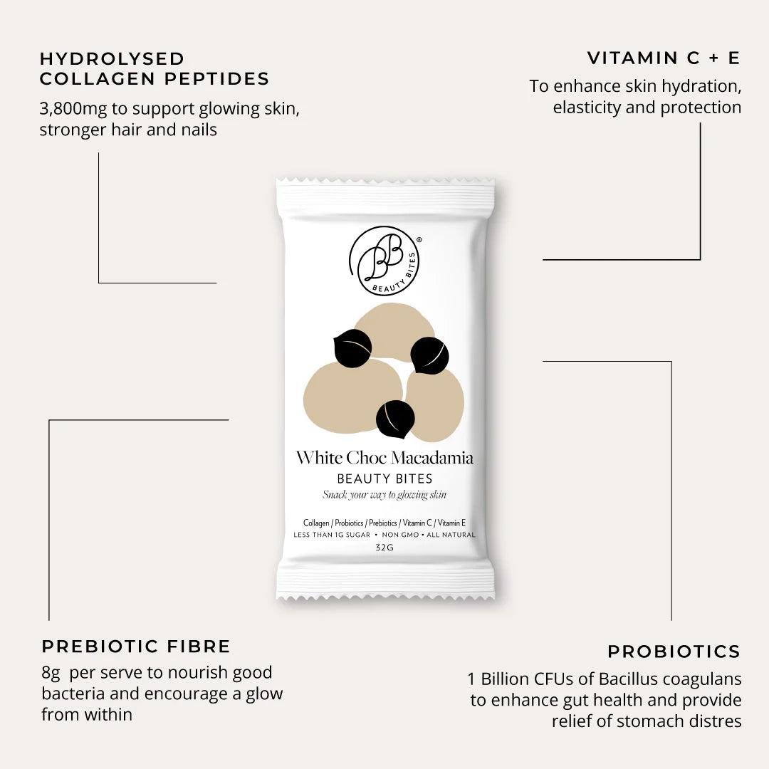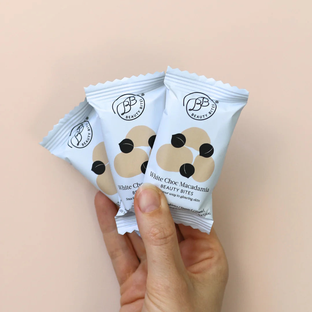 NEW FLAVOUR DROP: If you consider yourself a white chocolate girlie and love a macadamia or two, the brand-new White Choc Macadamia Beauty Bites® are for you. With less than 1g of naturally occurring sugar, it's the perfect mix of macadamias and our bespoke white chocolate.